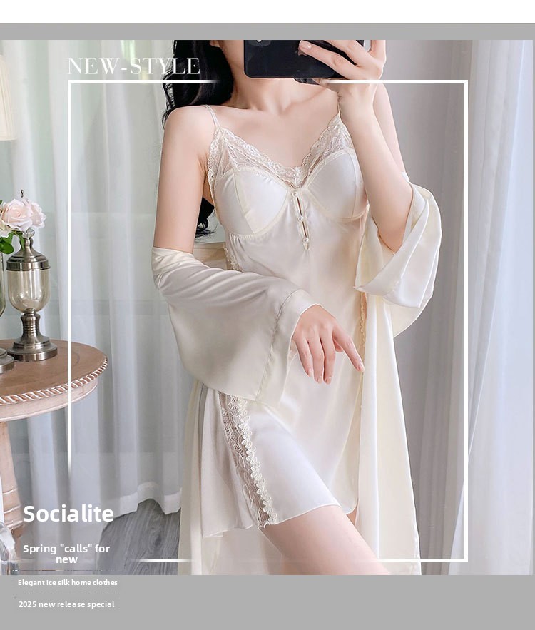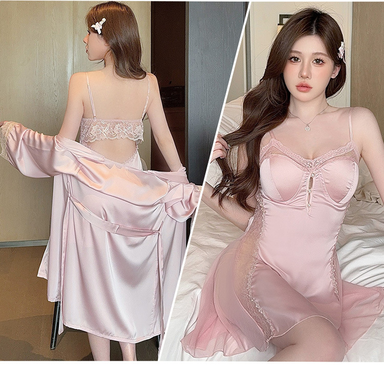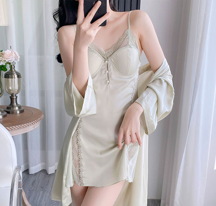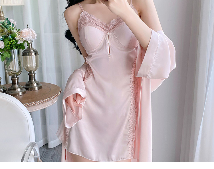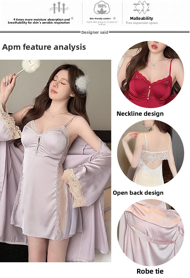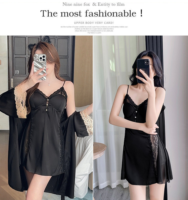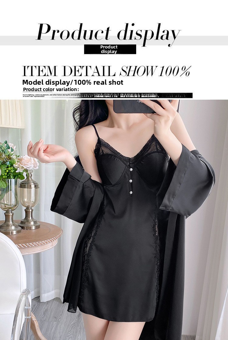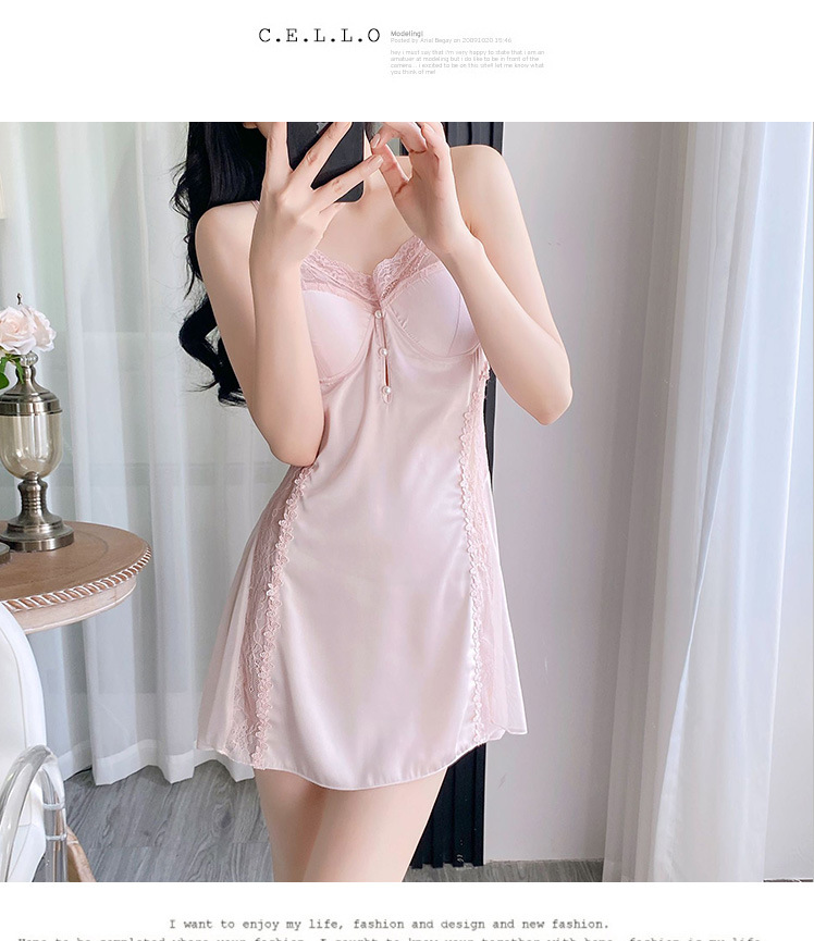 قميص نوم نسائي أحمر من الساتان مزين بأزرار لؤلؤية ودانتيل | فستان نوم داخلي بحمالات رفيعة وكوب مبطن | ملابس نوم رومانسية على الطراز الكوري