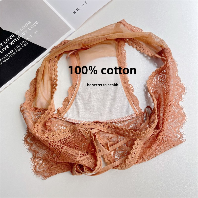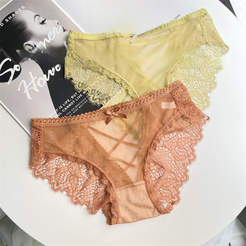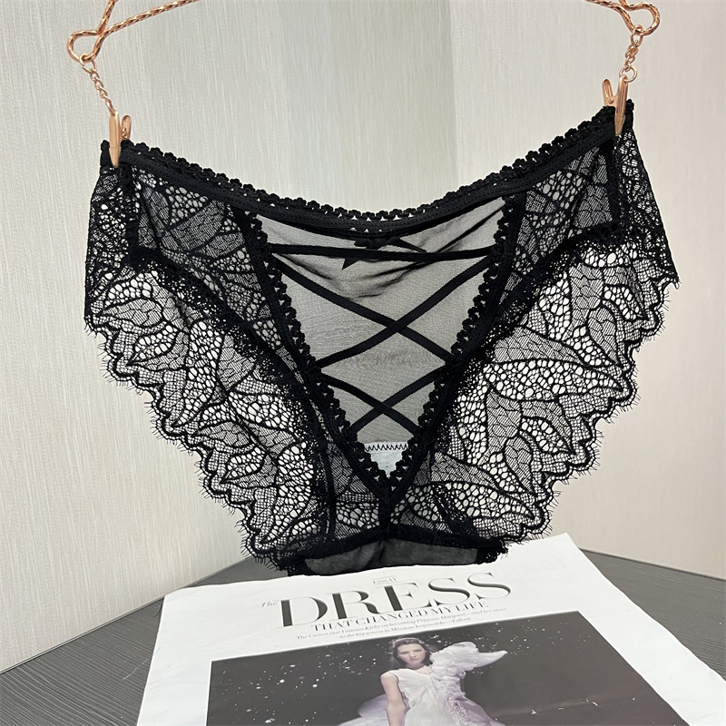Damen Höschen mit schwarzer Spitze und überkreuzter Vorderseite | Transparente Mesh-Schnürunterwäsche | Sexy Wimpernspitzen-Slips