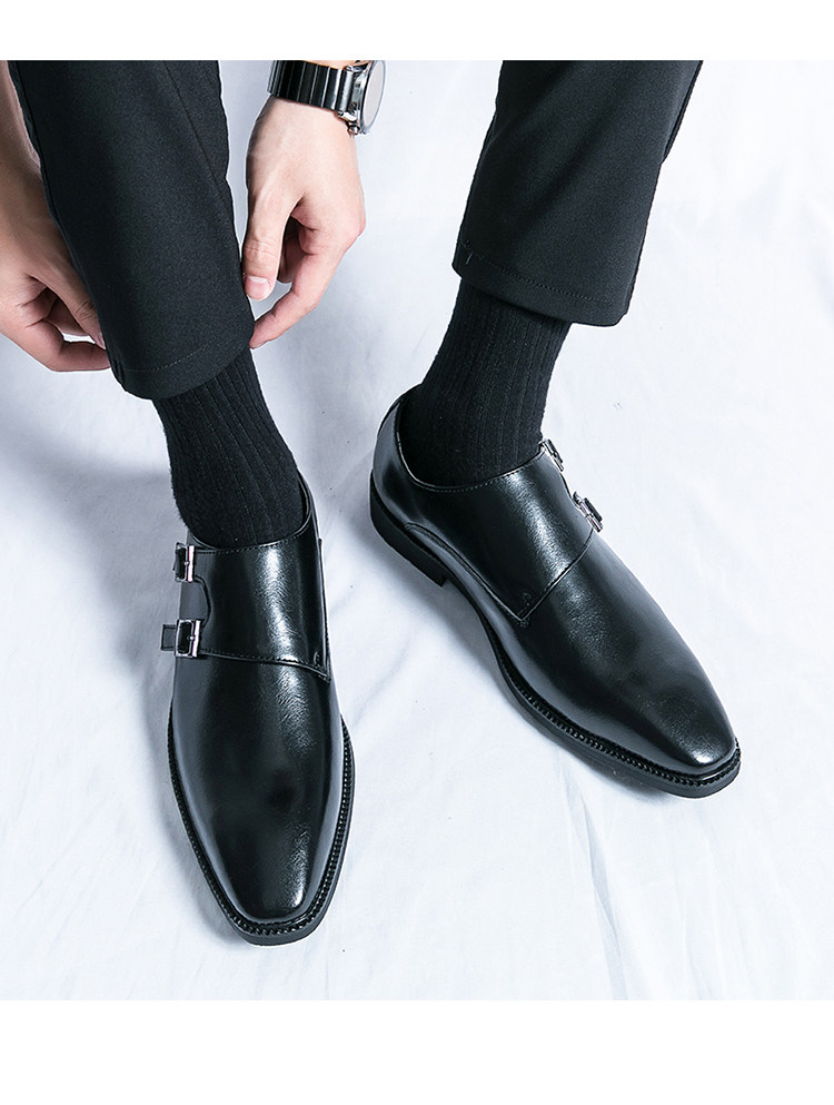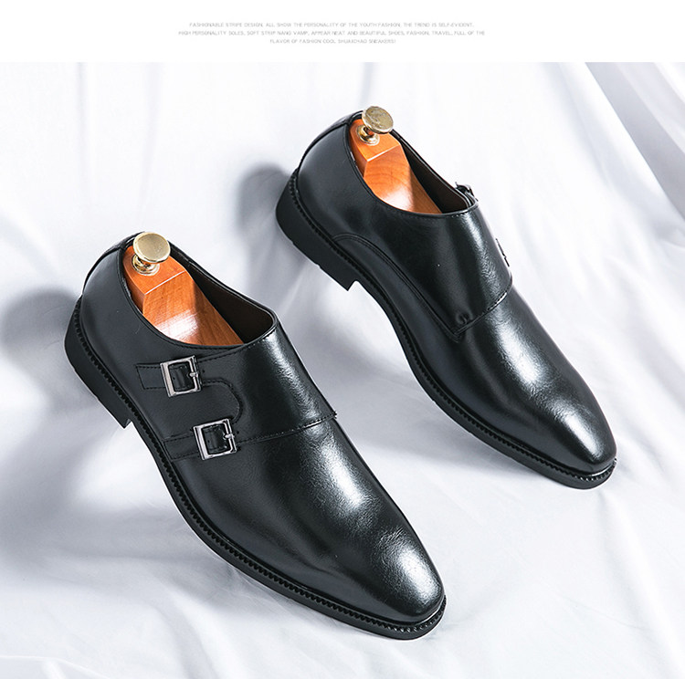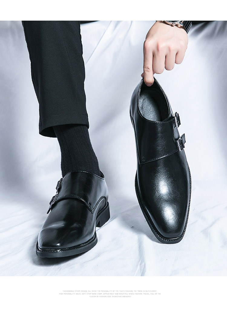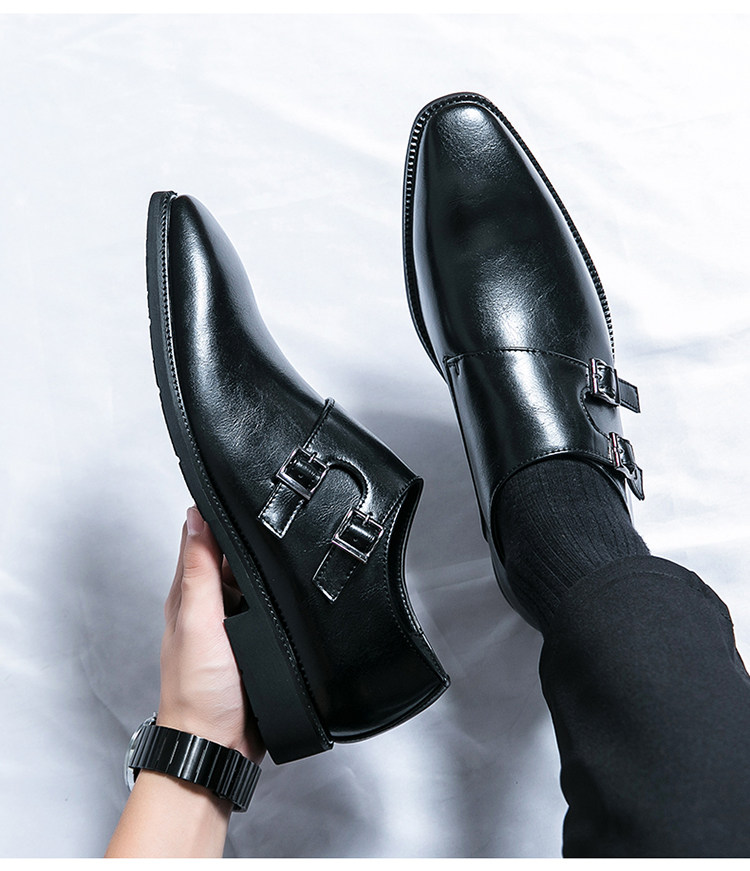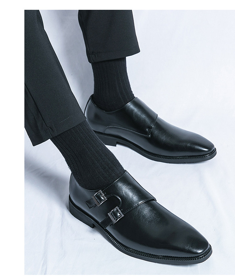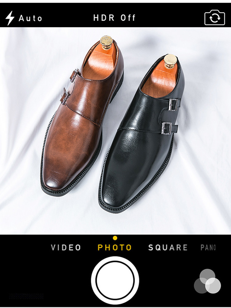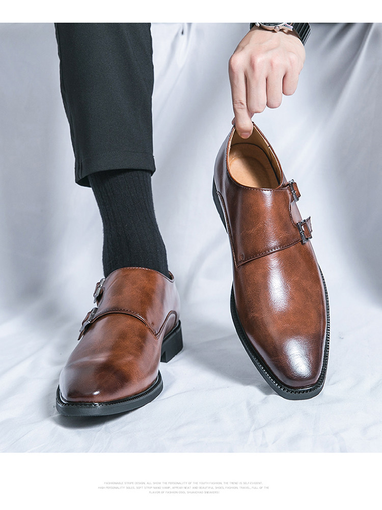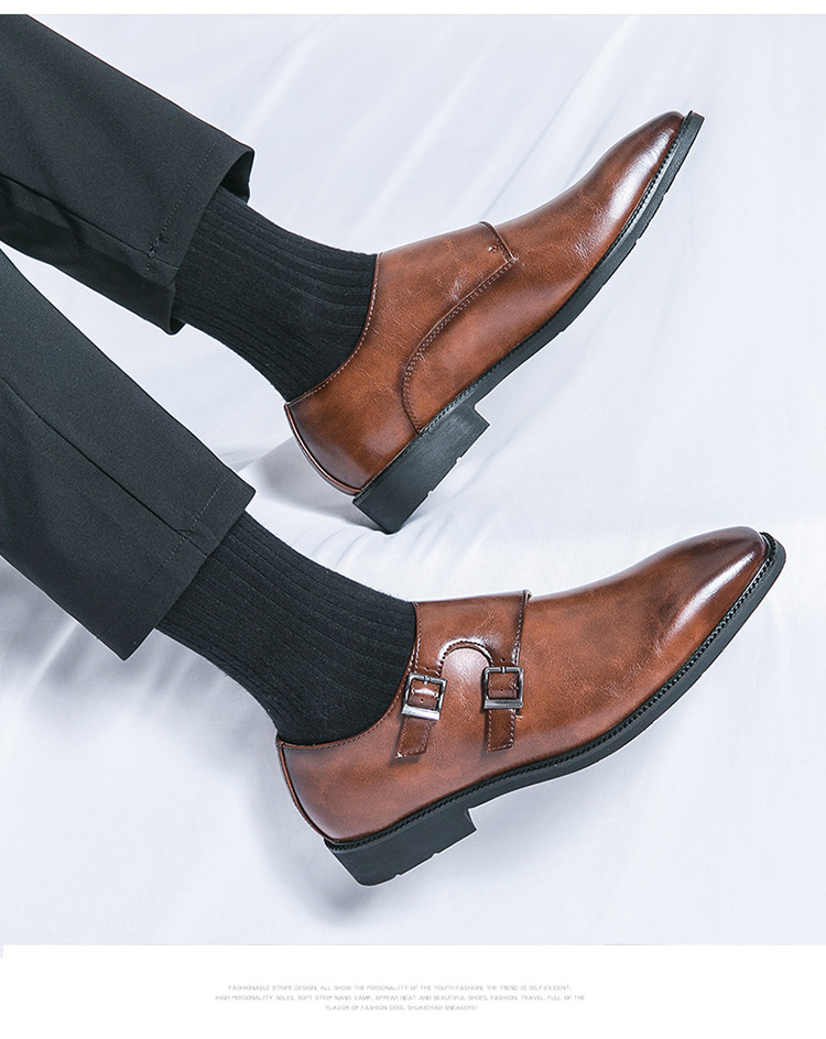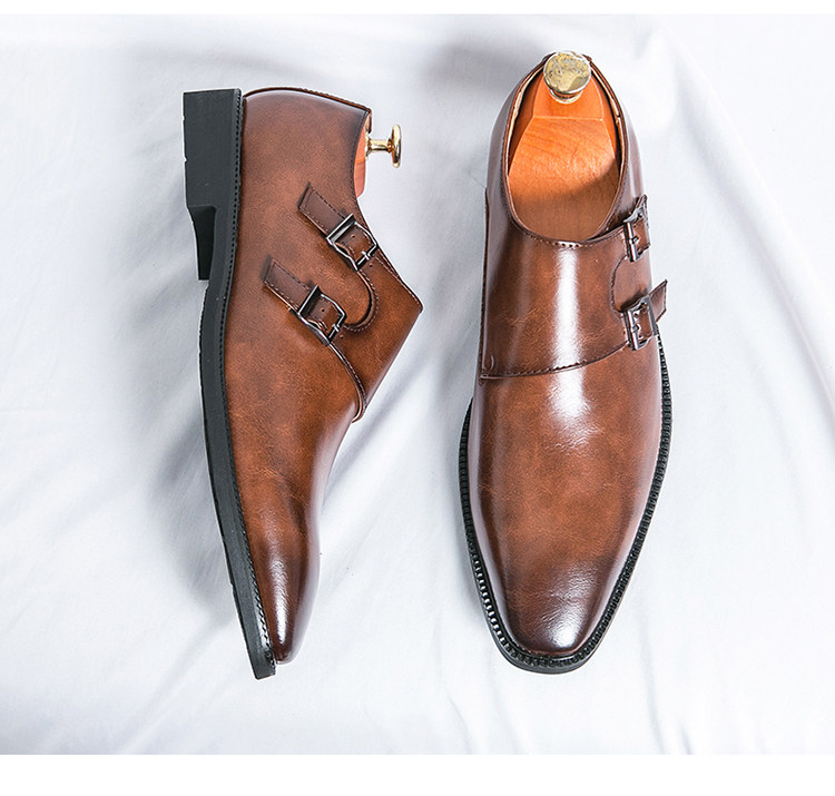 Mit diesen hellbraunen Herren-Double-Monk-Strap-Schuhen beweisen Sie Stil und Eleganz. Das hochwertige, polierte Leder-Obermaterial, die beiden Schnallenriemen in Gunmetal-Optik, die elegante, spitze Zehenpartie, die Lederinnensohle und die schlanke schwarze Laufsohle machen sie zu einer zeitlosen Luxusalternative zum klassischen Oxford – perfekt für Hochzeiten, Business-Events und festliche Anlässe.