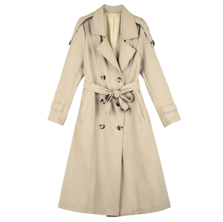 Women's Double-Breasted Trench Coat | Classic Khaki Mid-Length Windbreaker with Notch Lapel & Cuff Buttons | Elegant Slim Fit Autumn Overcoat