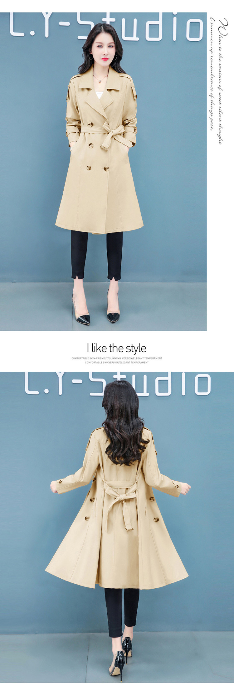 Elevate your outerwear game with this timeless women's double-breasted trench coat in classic khaki. Featuring a chic notch lapel, structured shoulder epaulettes, cuff button detail, and a flattering slim mid-length silhouette ? effortlessly styled for the office, city strolls, or weekend outings this autumn and spring.