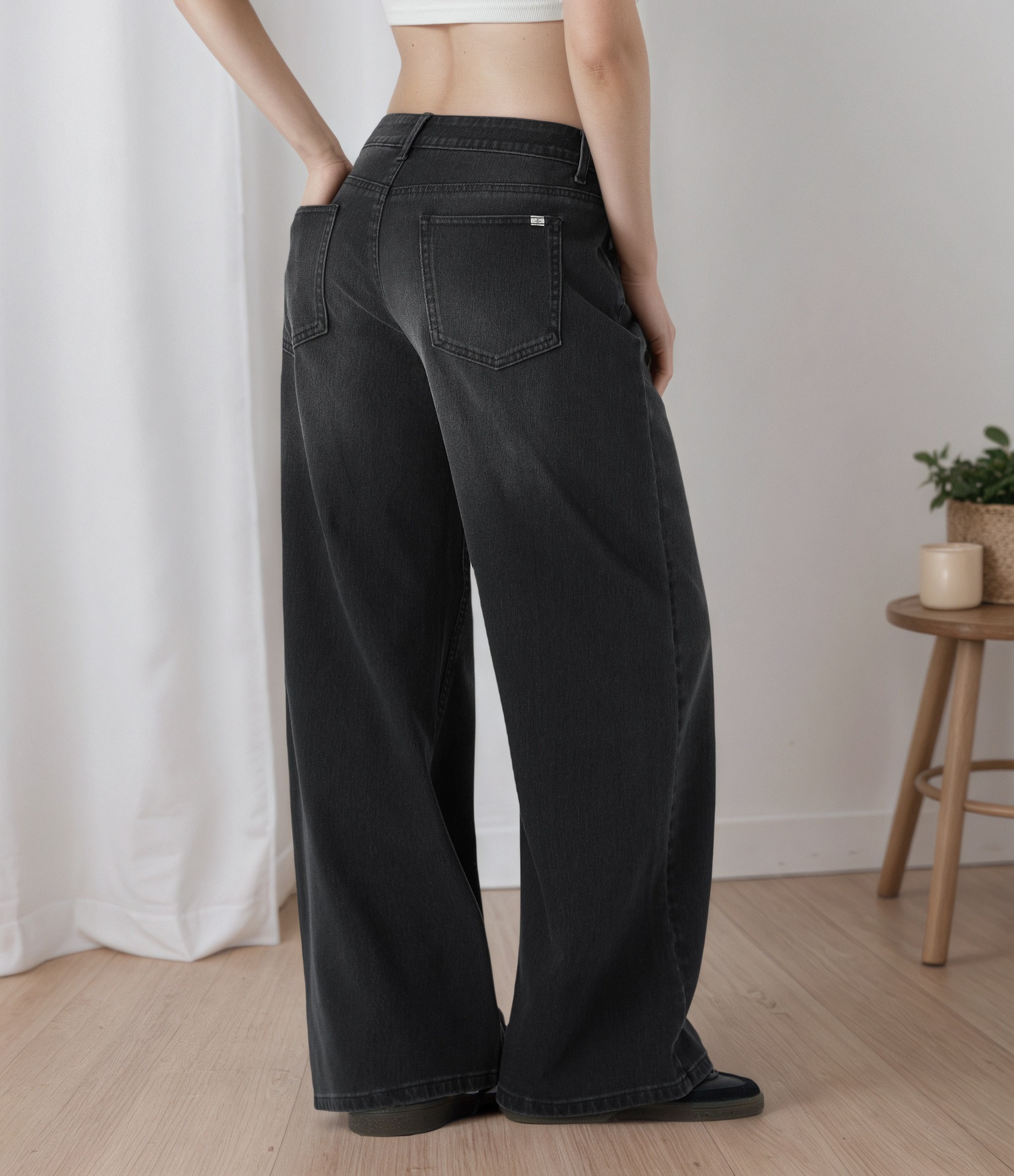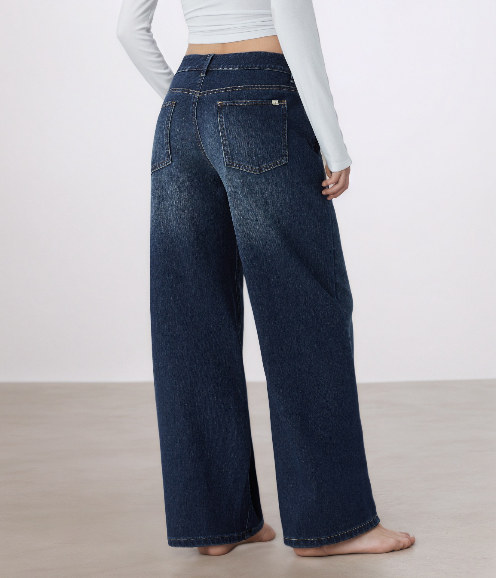 Disinvolti e rilassati, questi jeans a gamba larga a vita bassa presentano una fascia in vita a V lusinghiera e una finitura chiara e delicata. Perfetti per look casual di tutti i giorni, abbinati a un crop top o a una maglietta infilata all'interno.