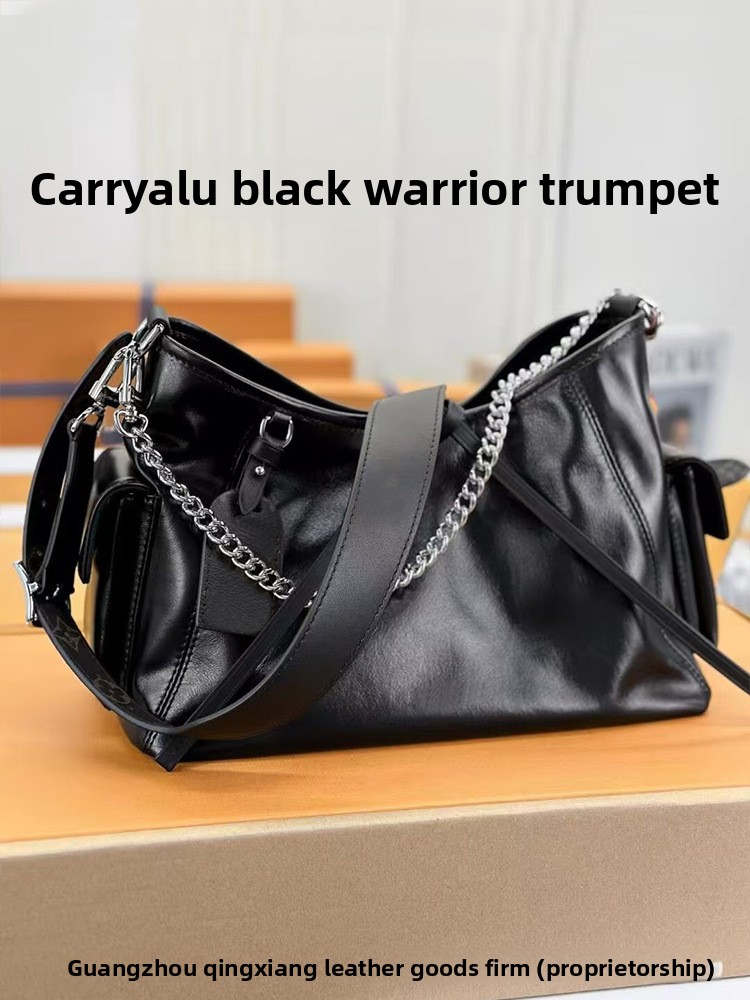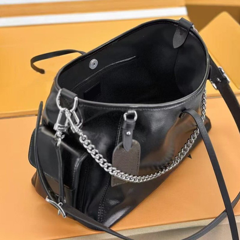 Statement Piece: The combination of glossy black leather and prominent chain detail makes this more than just a bag?it's a statement accessory that elevates any outfit. The distinctive design ensures you'll stand out in the best way possible.