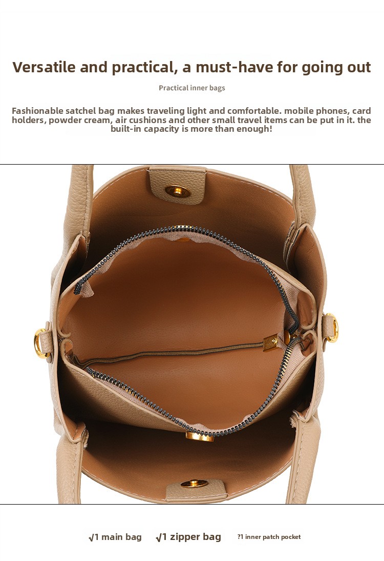 Stylish Design: Modern bucket bag with urban simplicity, perfect for leisure and travel.