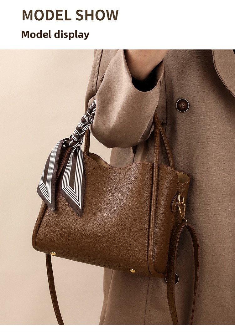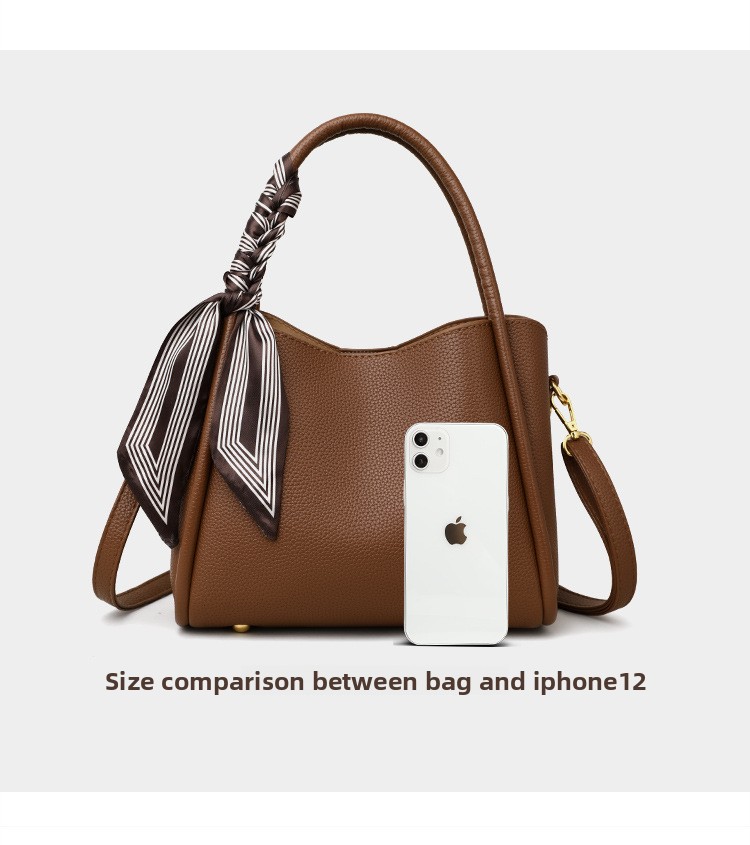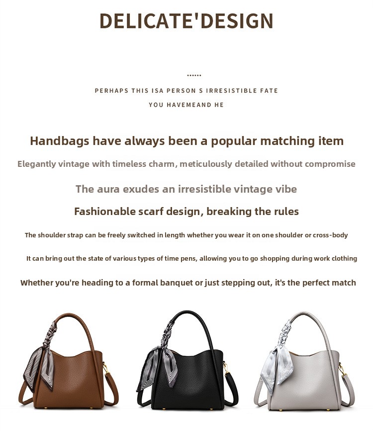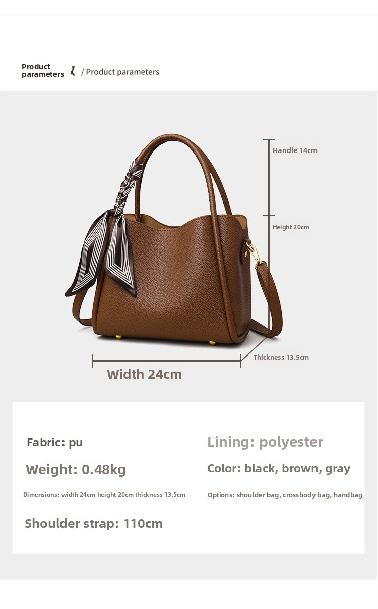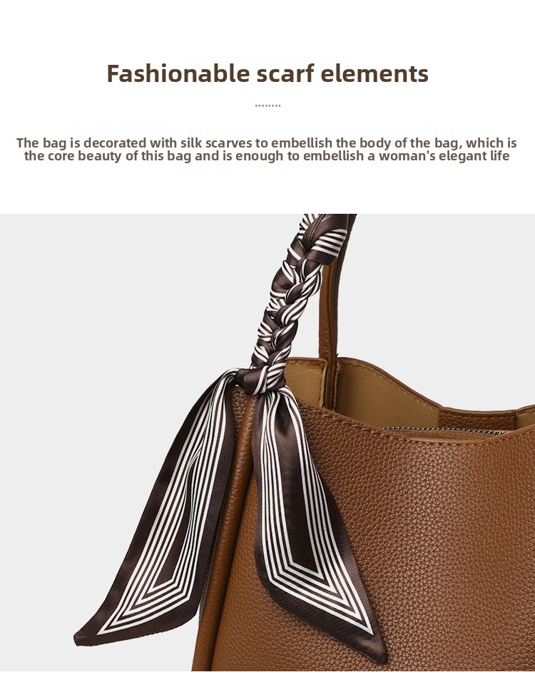 Color Options: Brown with silk scarf, black with silk scarf, elephant gray/khaki with scarf (label random)