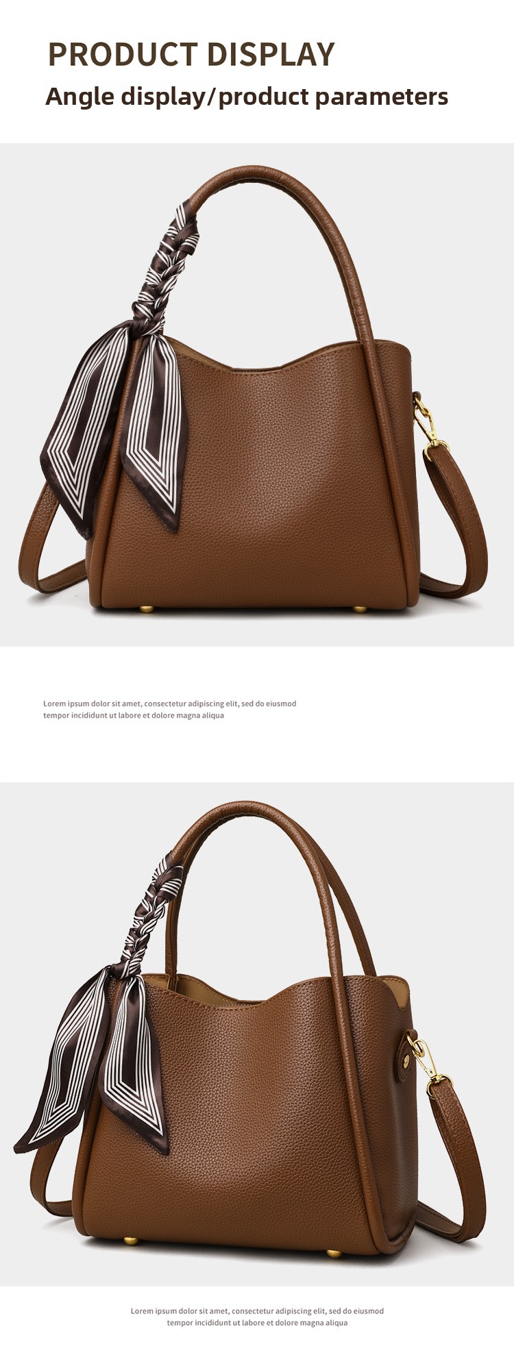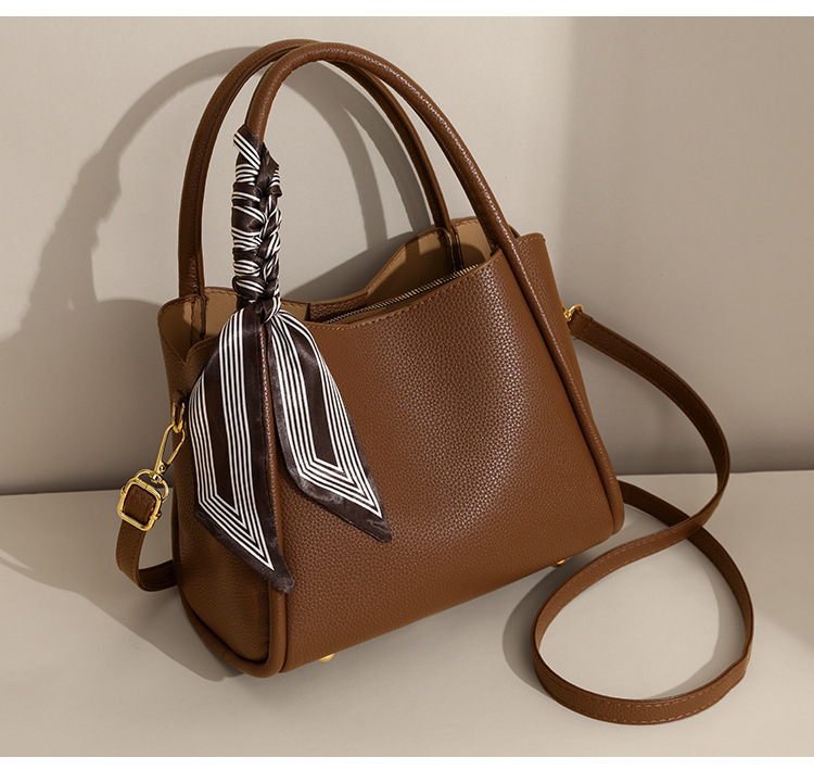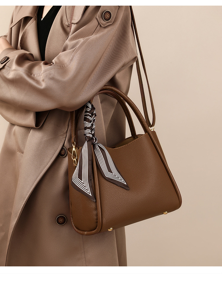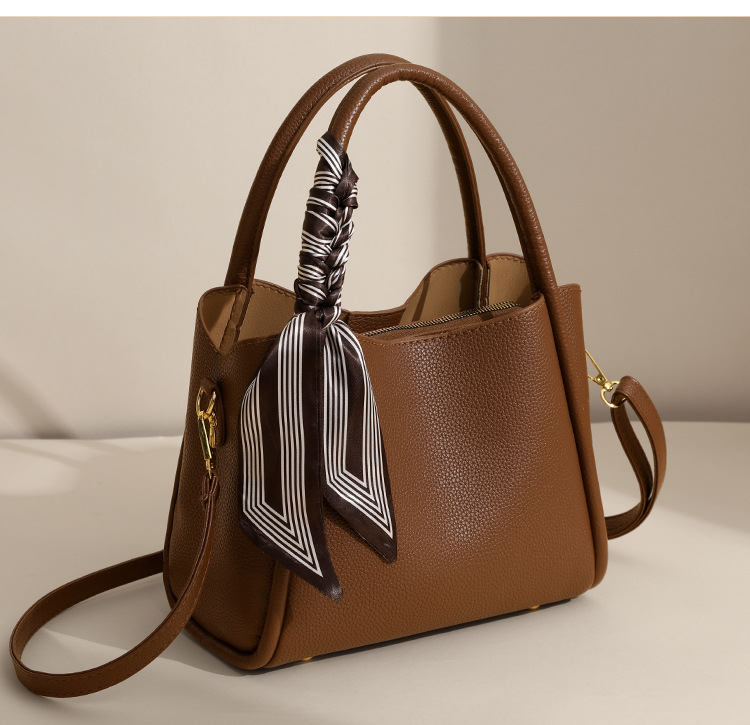 Color Options: Brown with silk scarf, black with silk scarf, elephant gray/khaki with scarf (label random)