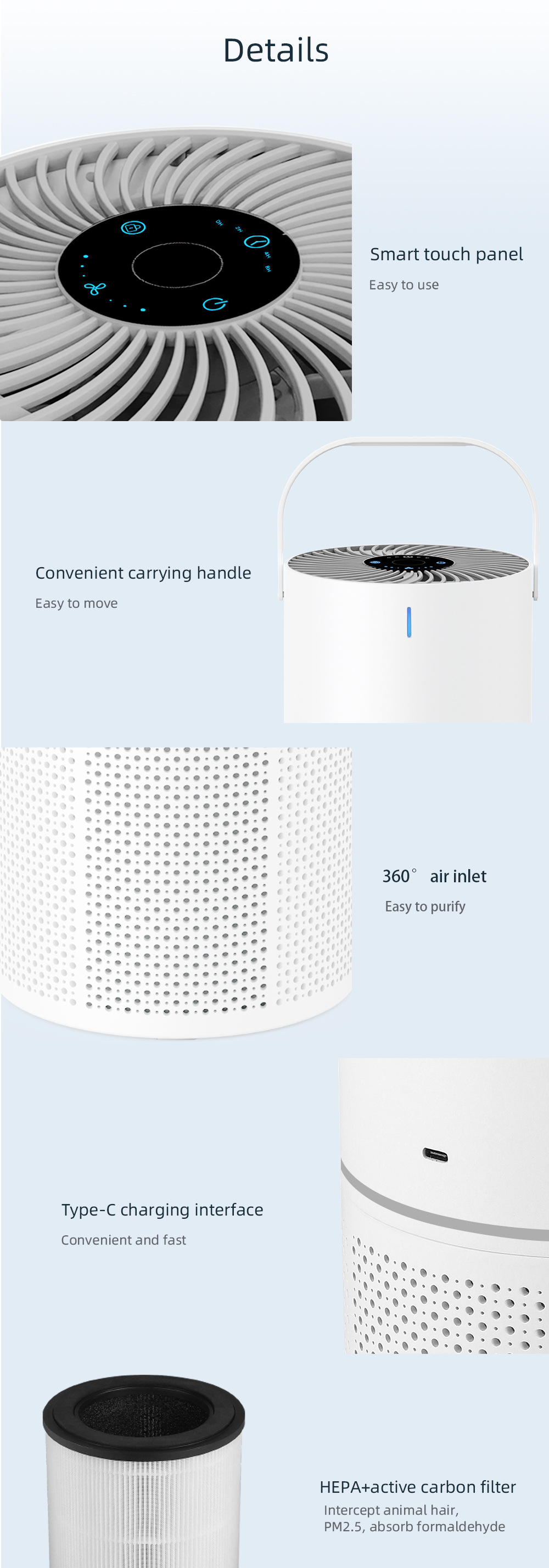 This compact desktop air purifier punches well above its size. The cylindrical 360� intake design pulls air in from all sides, the touch control panel on top is genuinely intuitive, and that carry handle means you can move it from your bedroom to your home office in seconds. I've been running mine on the low speed setting overnight and the difference in how stuffy the room feels in the morning is noticeable. Fair warning ? the filter replacement indicator light can be a bit sensitive, so don't panic the first time it flickers after just a few weeks.