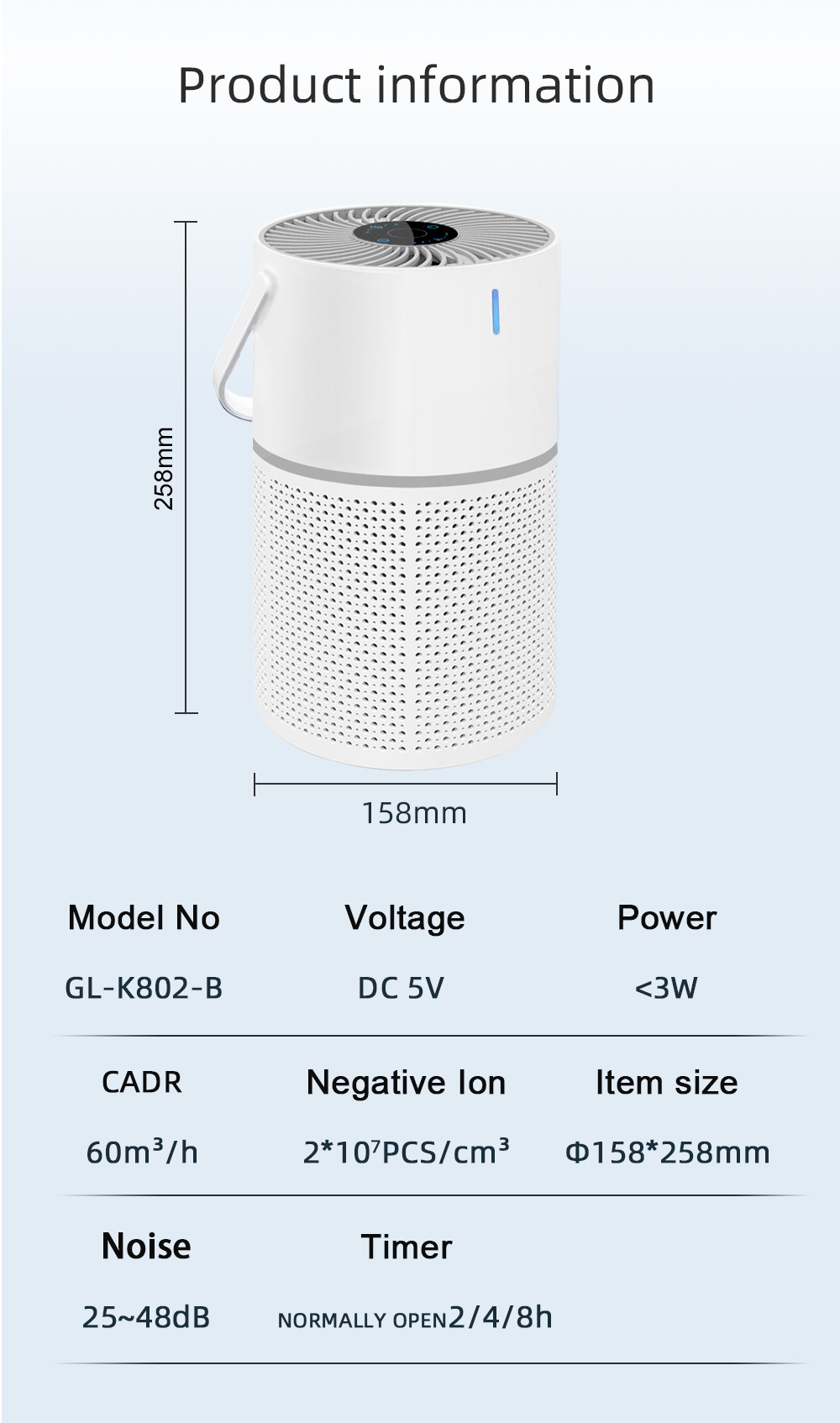 Function: Negative ions, formaldehyde removal, pet odor elimination