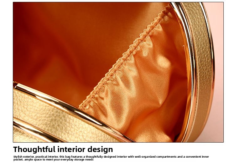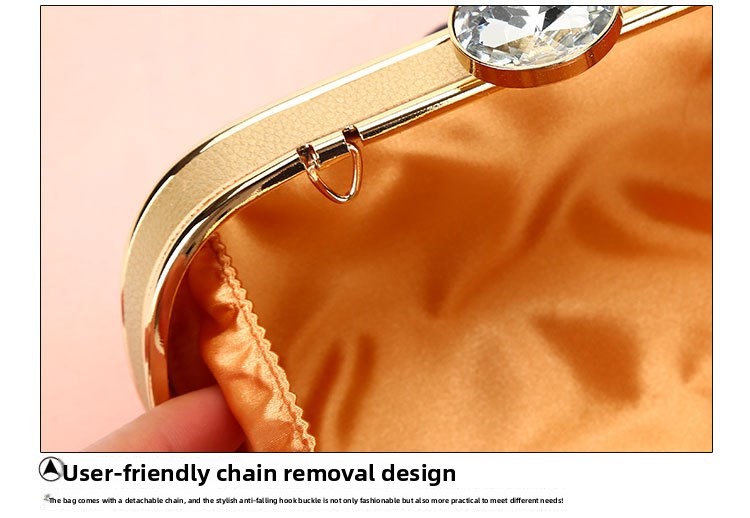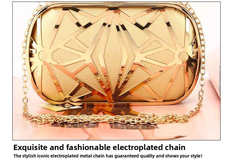 - Detachable gold chain strap (can be worn as crossbody, shoulder bag, or clutch)