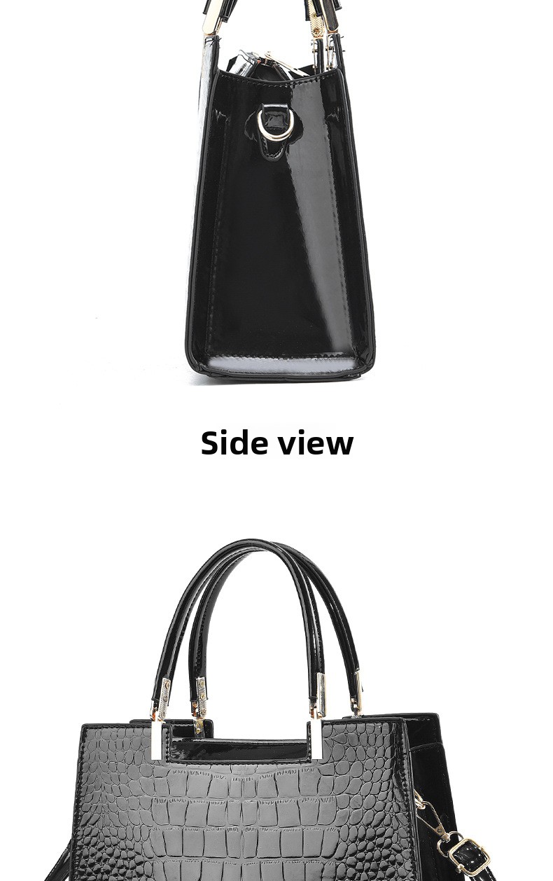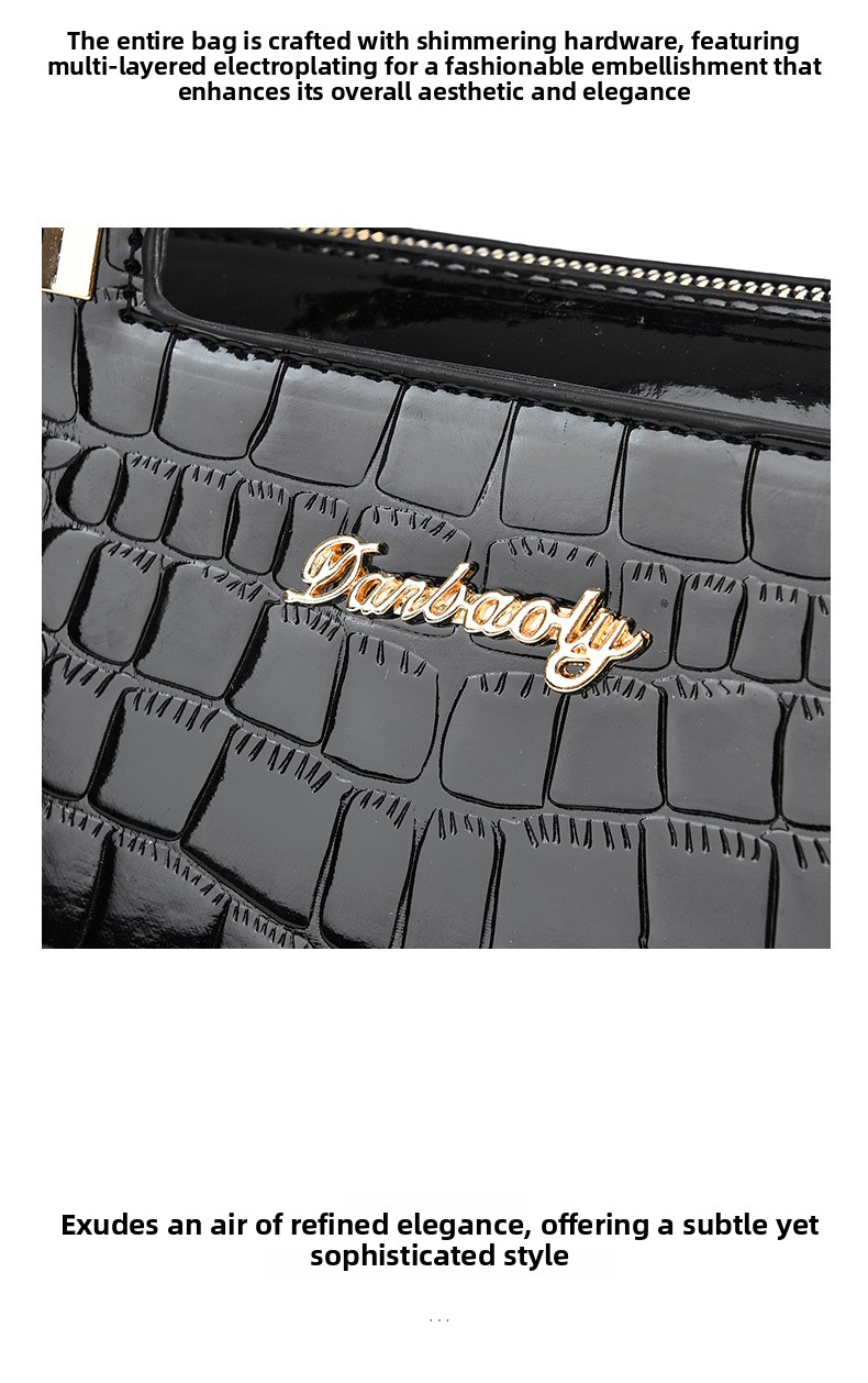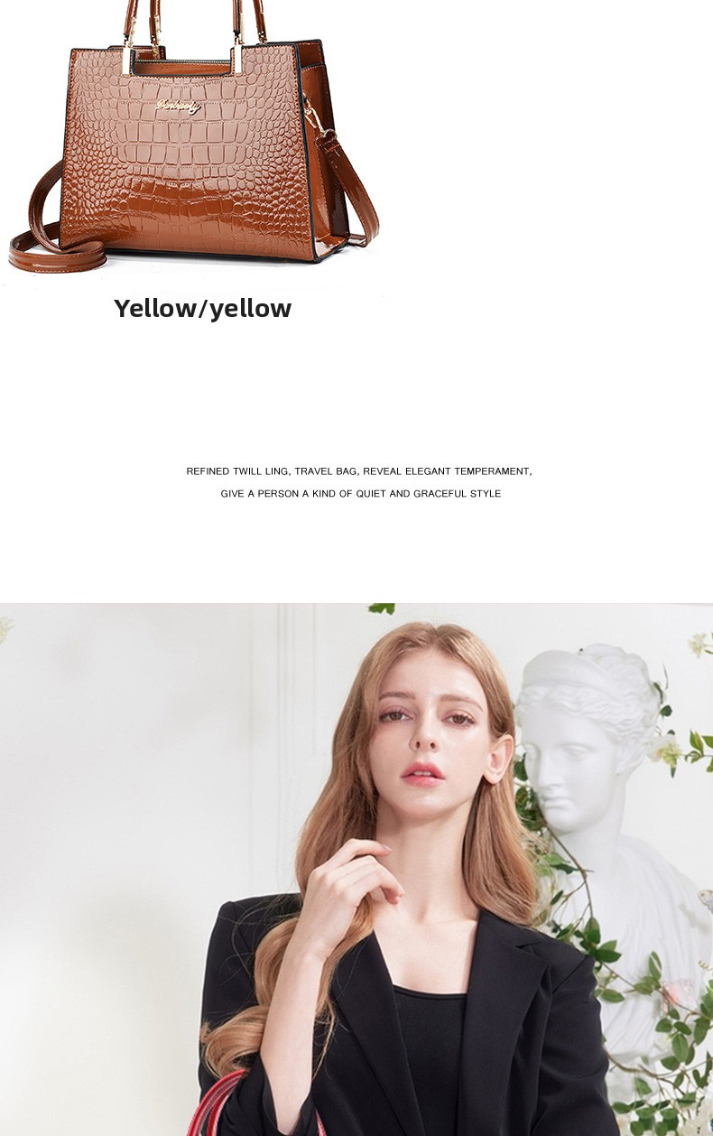 Make a bold, glamorous statement with this Gold Croc Embossed Luxury Tote Handbag ? a stunning structured satchel crafted from high-gloss metallic gold faux leather with an all-over crocodile emboss pattern, polished gold top handles, a logo plaque detail, and an included adjustable crossbody strap for versatile carrying options. The structured silhouette, black trim edge detailing, and gleaming gold-tone hardware create a look of undeniable luxury at an accessible price. Perfect for evening events, cocktail parties, date nights, weddings, holiday celebrations, or elevating any everyday outfit with maximum impact.